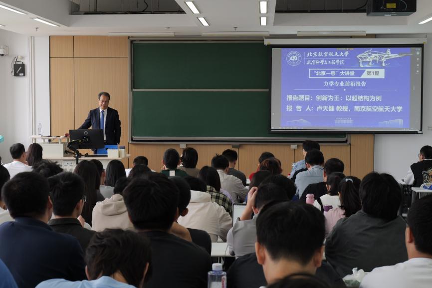 (通讯员 邵丽华 郭元东 胡姝瑶 闫东泽) 9月11日,航空学院“北京一号”大讲堂之力学专业前沿报告、人机与环境工程专业前沿报告在沙河校区4号教学楼顺利举办。“北京一号”大讲堂聚焦科技前沿与工程需求,引领航院学子体悟大科学观念、大工程视角、大先生风范,以期传承北航先辈“空天报国、敢为人先”的“北京一号”精神。新学期第一讲中,邀请到了南京伊人99卢天健教授、航天五院总体部苗建印研究员主讲。