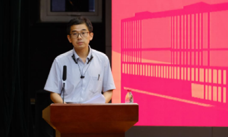 田保林教授作为教师代表发言,以自身经历为引导,勉励新生们勇挑重担,科工结合,强基固本,拓展视野,“专”“博”并进,注重学科交叉,忌空中楼阁,使学术落地生根。