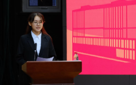 卢帅婷作为博士研究生新生代表发言,分享自己在科研中遇到挫折时的心迹,并呼吁同学们同向而行,行稳致远。作为学生要心中有光,做到“吾将上下而求索”;要脚下有路,做到“任尔东西南北风”。
