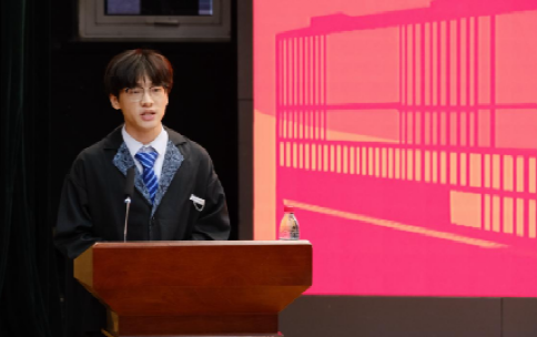 赵辰飞作为硕士研究生新生代表发言,讲述自己对“研究”二字的体会,作为研究生要“研”出精华,“究”出价值,并强调航空学子要敢于直面挑战,更要心怀向往,怀着敢为人先的勇气与坚定的执行力成长为新一代航空人。