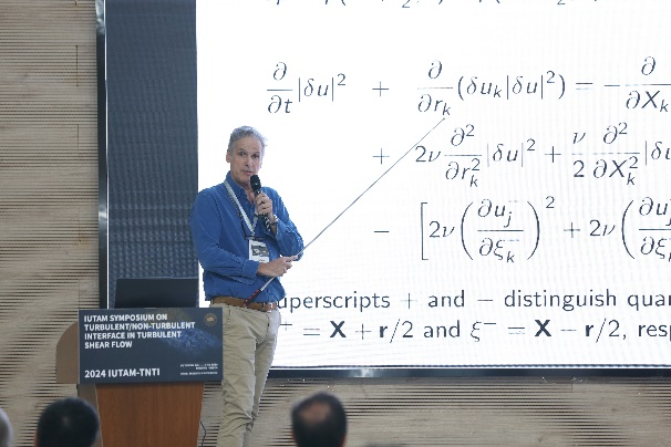研讨会于2024年10月9日上午开幕,会议共同主席Ivan Marusic院士代表会议主席王晋军教授及会议科学委员会首先致开幕词,他向到场来自不同国家的专家学者表示热烈欢迎,期待本次会议能为TNTI领域的全球科学家们交流搭建平台,为推动该领域的发展发挥积极作用,并向IUTAM、北京伊人99及各协办单位、IUTAM-TNTI科学委员会以及本地组委会的付出表示感谢。
