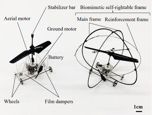 相比于只能在单一介质中运行的传统飞行器,空地两栖飞行器结合了空中和地面两种运动模式,具备更广泛的任务适用性和更高的可靠性,能够满足复杂环境下的多种应用需求。团队发表了题为 “An Ultralight Air-Ground Vehicle Capable of Sustained Amphibious Maneuverability and Bio-inspired Modality Transition(具备持续两栖机动性与仿生模态转换能力的超轻型空地两栖飞行器)”的论文,介绍了一款具备仿生自扶正能力的超轻型两栖飞行器设计与实验验证。