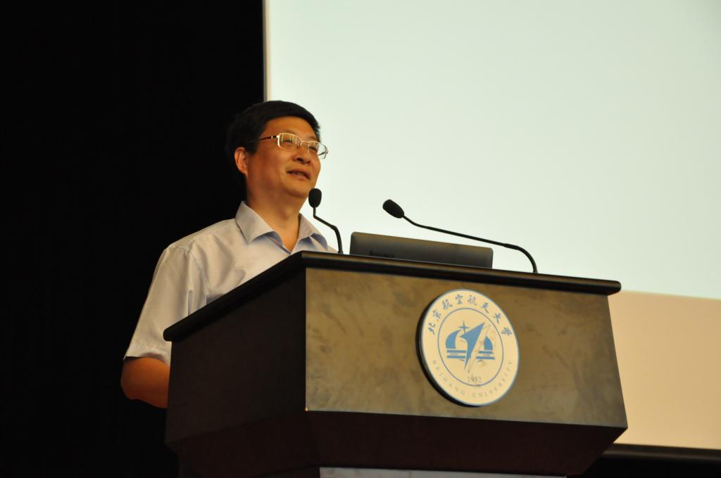 首先,航空学院院长杨超教授代表学院对来自祖国各地的261名新同学表示热烈的欢迎和衷心的祝贺,对家长的莅临表示衷心的感谢。杨院长详细介绍了航空学院的发展历程、系所设置、教学科研情况,并结合社会热点和行业发展剖析了航空学院所面临的机遇与挑战。最后,杨院长寄语同学们“心系航空、志在蓝天、立志高远、艰苦奋斗、求实创新”,勉励大家通过不懈的努力实现人生的价值。杨院长讲话细致全面、深入浅出,赢得了新生及家长的阵阵掌声。