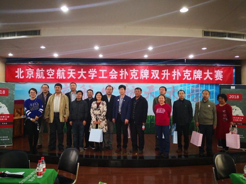 3月31日下午,北京伊人99工会在思源楼二层多功能厅举行了2018年扑克牌双升比赛,航空学院代表队参加并荣获冠军。