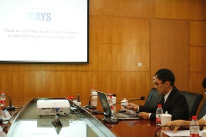 王晓华的报告题目是《Study on Local Heat Transfer Characteristics of Oblique Droplet Impact on Wet Walls》。